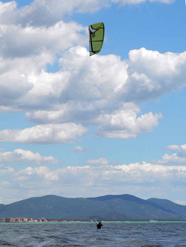Viele Kitesurf Schulen prägen hier das Bild. Bei gutem Wind sind hier 100te Kitesurfer auf dem Wasser.